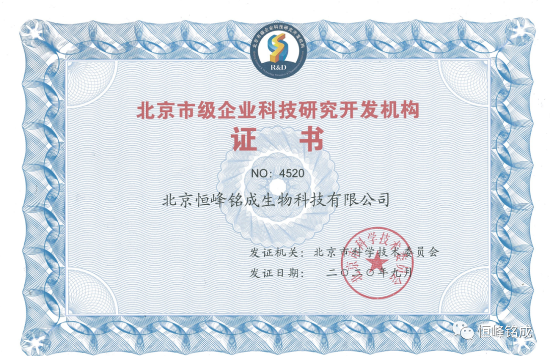 9月,通过北京市科学技术委员会的严格审查, 被认定为“北京市级企业科技研究开发机构。